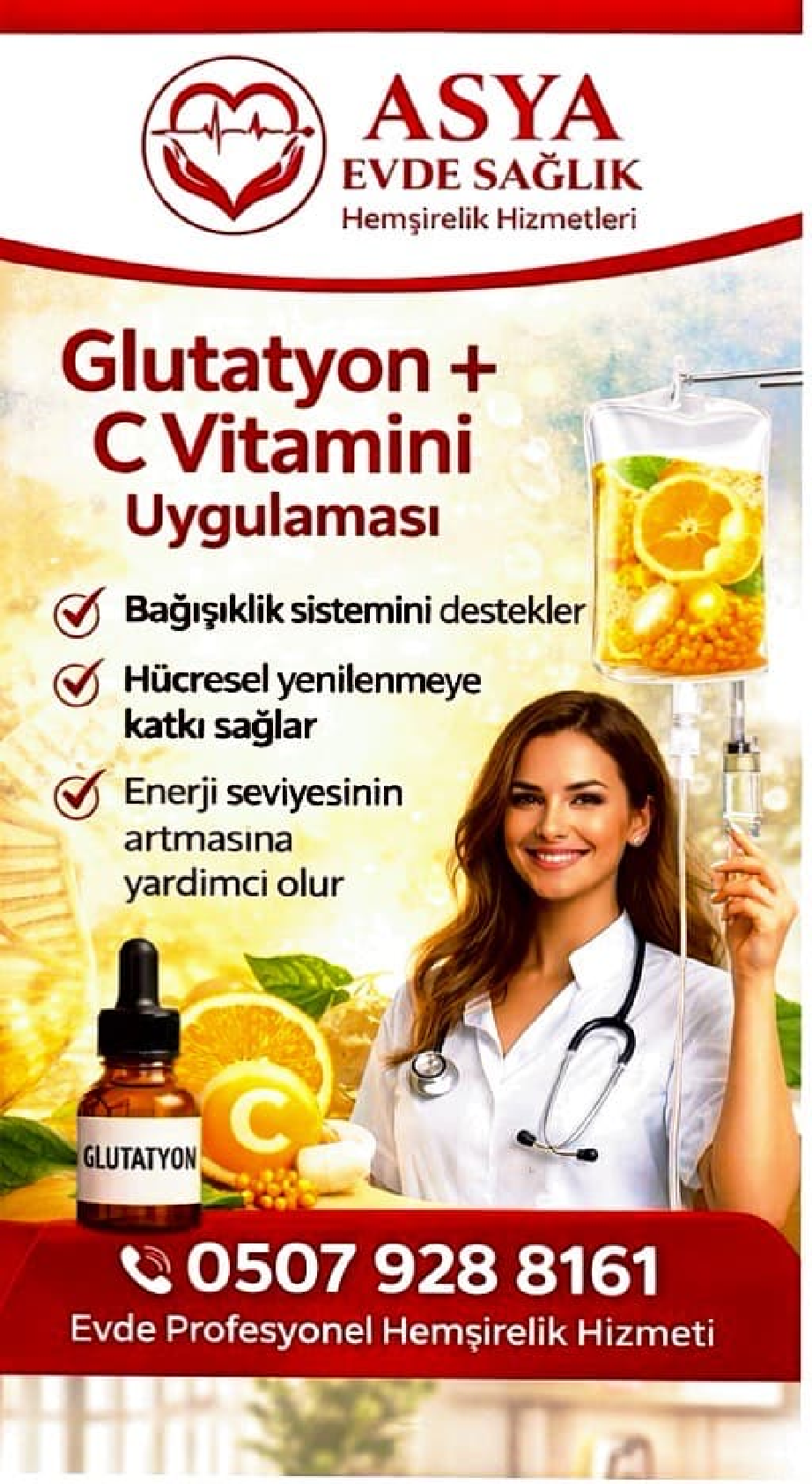 Lisanslı hemşire kadromuz enjeksiyon serum takım ve takip hizmetlerini ev ortamında profesyonelce sunar
